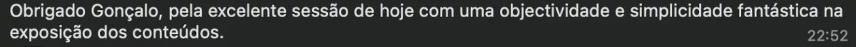 Mas também após as aulas a qualquer momento por Whatsapp (durante as 8 semanas)